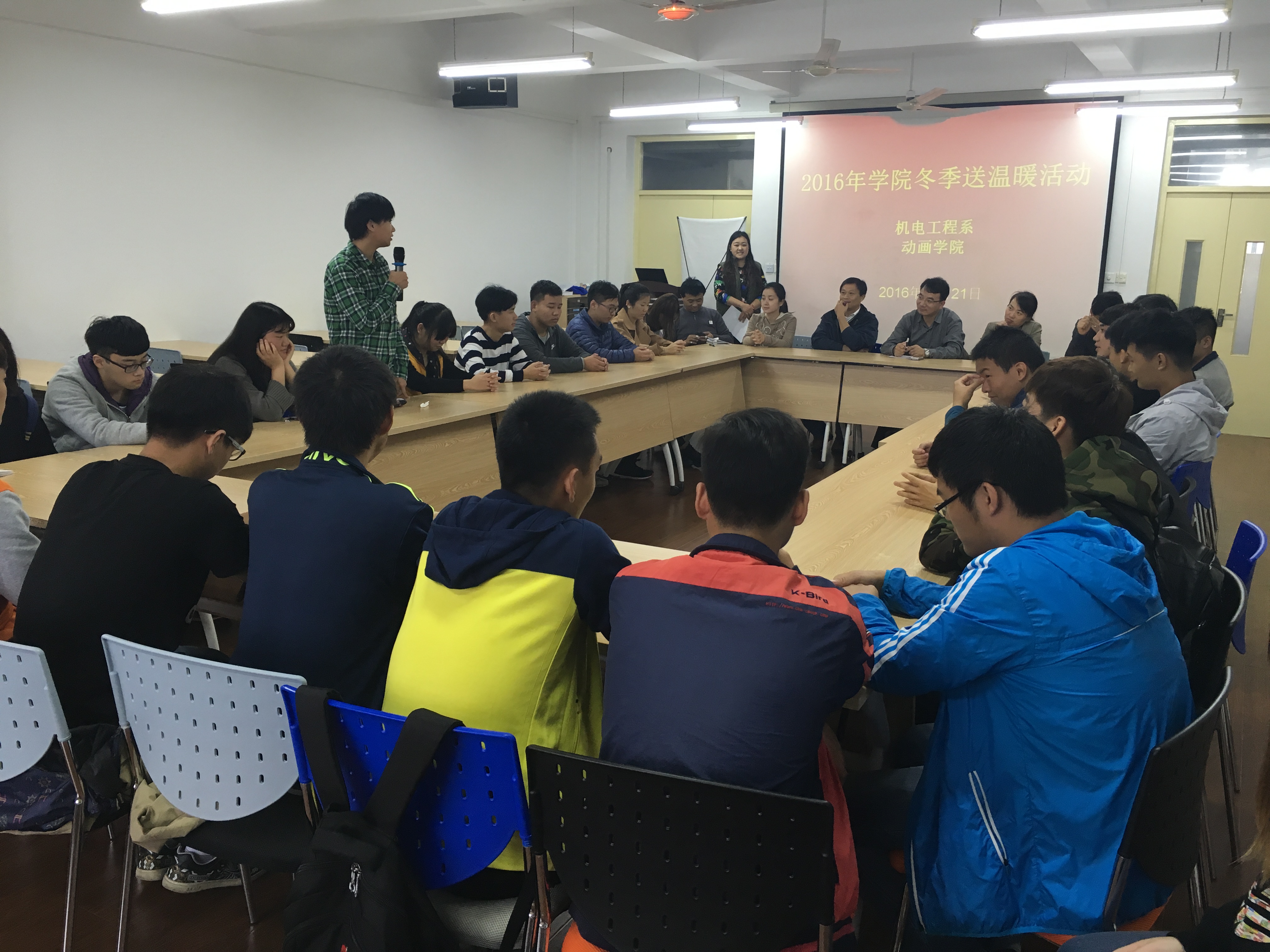 为营建“充满阳光”的校园氛围,帮助机电系、动画学院家庭经济困难学生度过寒冬。2016年11月21日中午,学院在TCN509室举行了冬季送温暖座谈会。学院党委副书记、副院长顾剑锋、学工部部长邵菁、机电系党政领导、动画学院党政领导及相关辅导员教师和接受学院此次送温暖活动的同学们出席了本次座谈会。