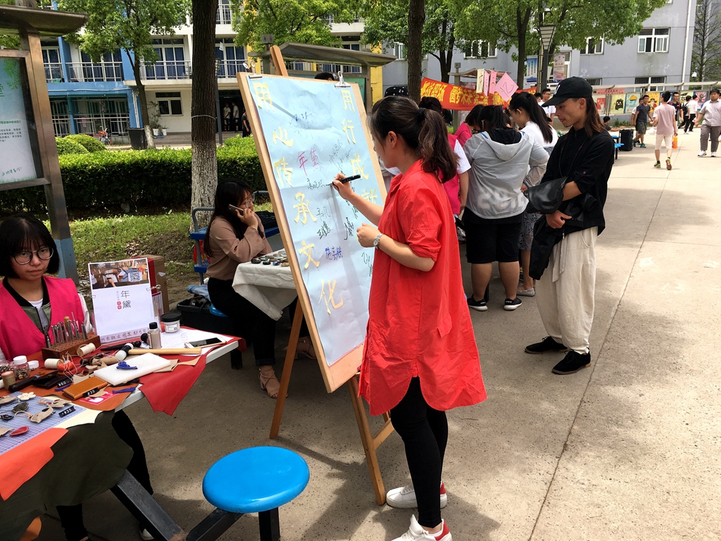 2017年5月24日,设计与艺术学院在生活园区举办了民间民俗文化活动。活动的内容包括:泥塑、中国结以及手工皮艺的制作,参与活动的师生可以免费领取轻黏土和红色编织带,自己动手完成一件或两件作品并留存。虽然大多数师生对塑泥的技艺并不是太了解,但是在设计与艺术学院同学们的演示与讲解下,师生对塑泥产生兴趣并进行亲身体验。中国结是一种中国特有的手工编织工艺品,展现了中华文化。师生纷纷参与中国结的编织,欣赏中国传统装饰习俗,感受中国悠久的历史和审美观念。与此同时,同学们还进行了皮艺作品的展示,赢得了师生们的赞赏。
