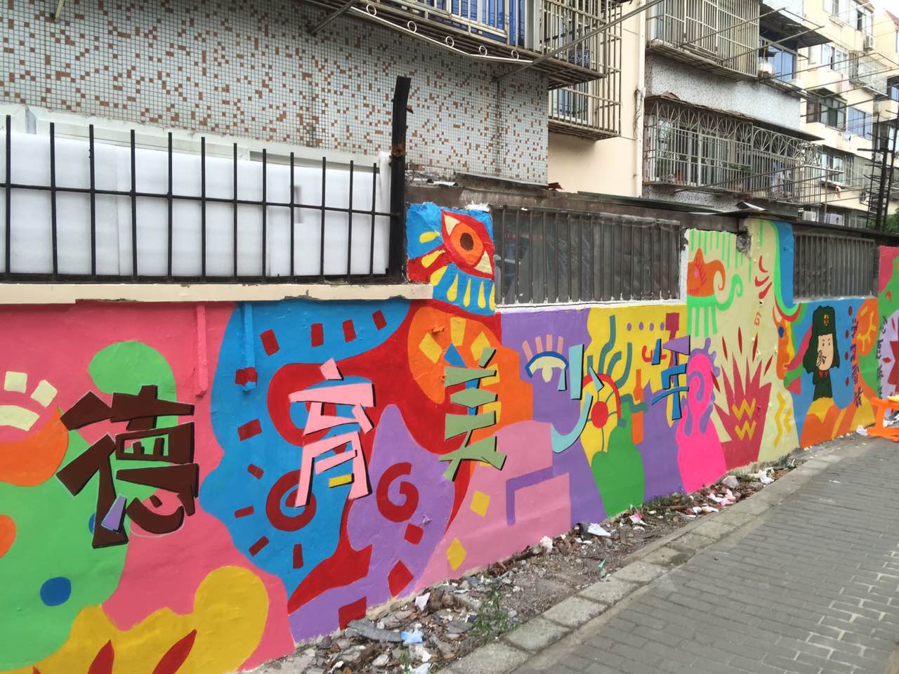 设计与艺术学院的同学们自2017年6月1日开始为期两周,参加了位于本市闵行区莘庄镇秀文路的文明涂鸦活动。此活动由闵行区文明办主办。这次的涂鸦墙,是以一长块约135米的墙,分别有18小主题的画面所组成,场面是非常震撼的。