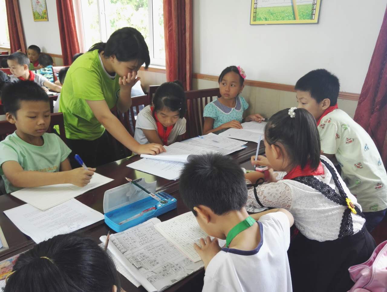 爱心暑托班还在有条不絮的进行中,志愿者们也和孩子们融洽的相处着,虽然时间不长,但是我相信我们志愿者和孩子们都会记住这一段的美好时光。