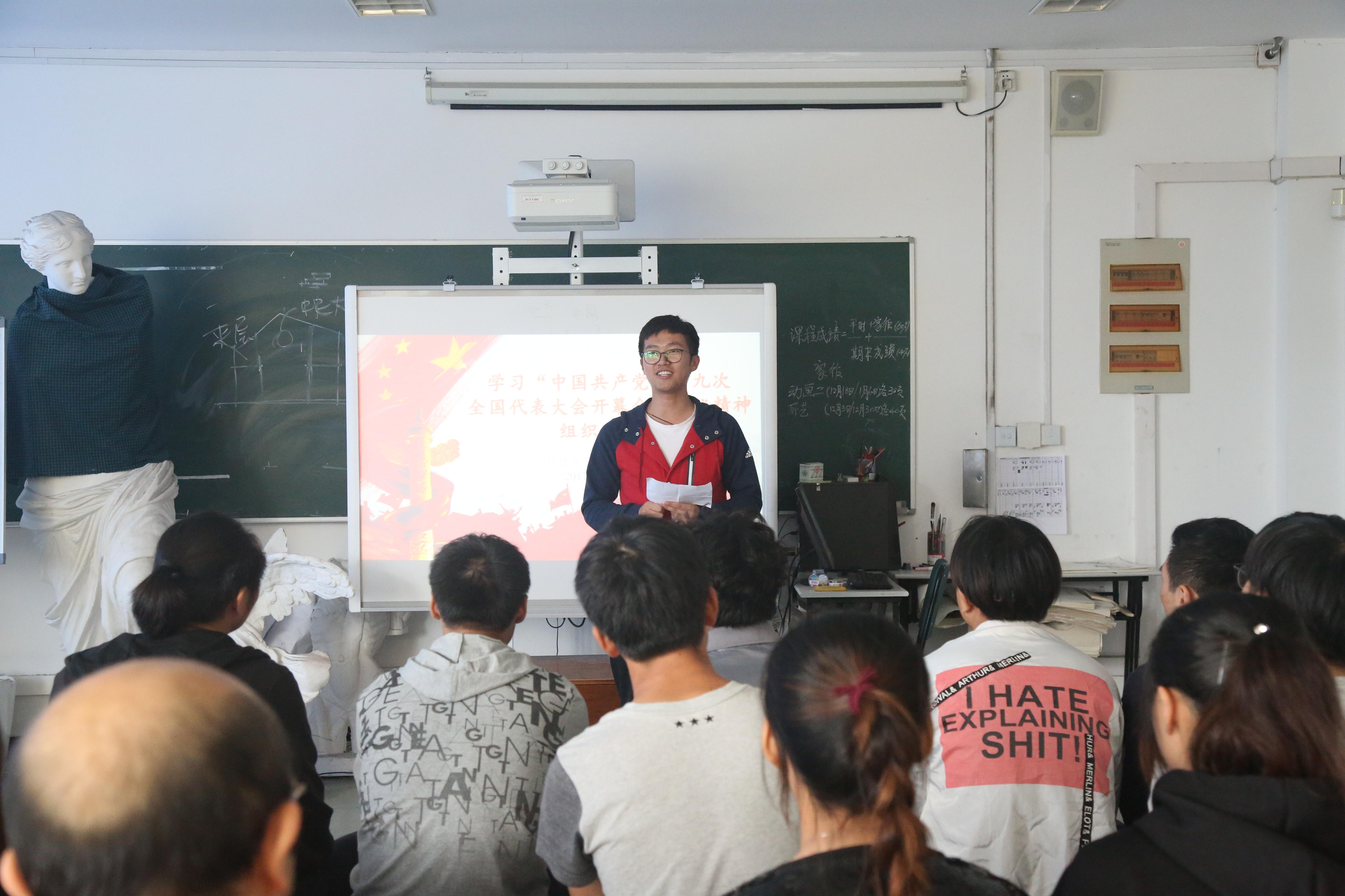 中国共产党第十九次全国代表大会开幕会结束后,设计与艺术学院党总支组织师生开展学习“中国共产党第十九次全国代表大会开幕会”会议精神组织生活会议,会议上教师代表和学生代表发表学习感想,切身感受到我国目前走入了新时代,国家从站起来到富起来再到强起来,坚定中国共产党领导下的伟大实践和巨大成果,师生们感慨美好,心存感激。教工代表表示:“我们在新时代背景下,要不忘初心、牢记历史,国家的繁荣富强来之不易,在国家的伟大目标的引领下,我们要从自身做起,做好本职工作,为社会主义现代化建设贡献力量。”学生代表表示:“我们的生活美满、家庭幸福离不开中国共产党的领导和实践,我们要牢记历史,勇往直前,以实际行动认真学习、开拓创新,以实际行动为社会主义现代化建设贡献力量。”