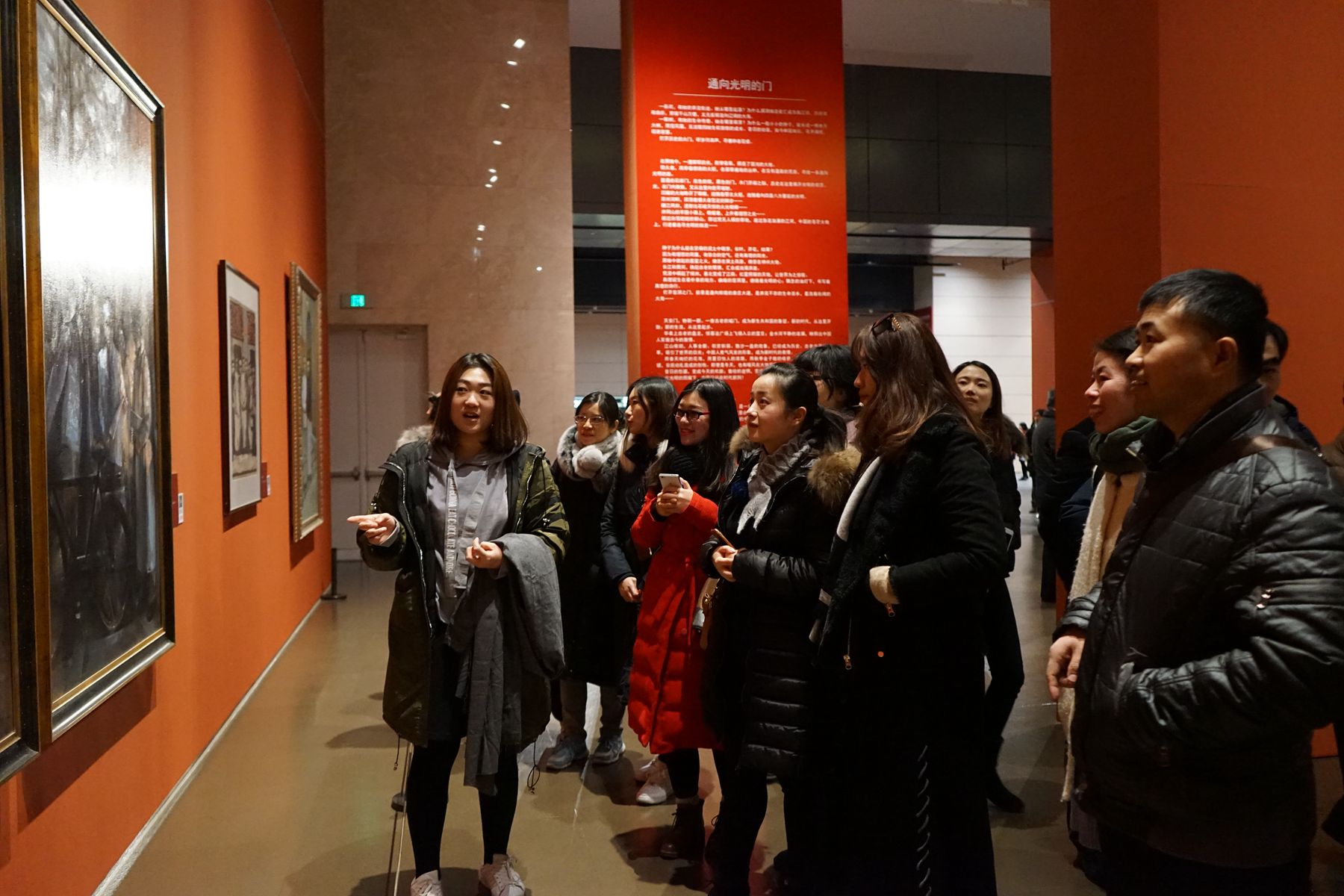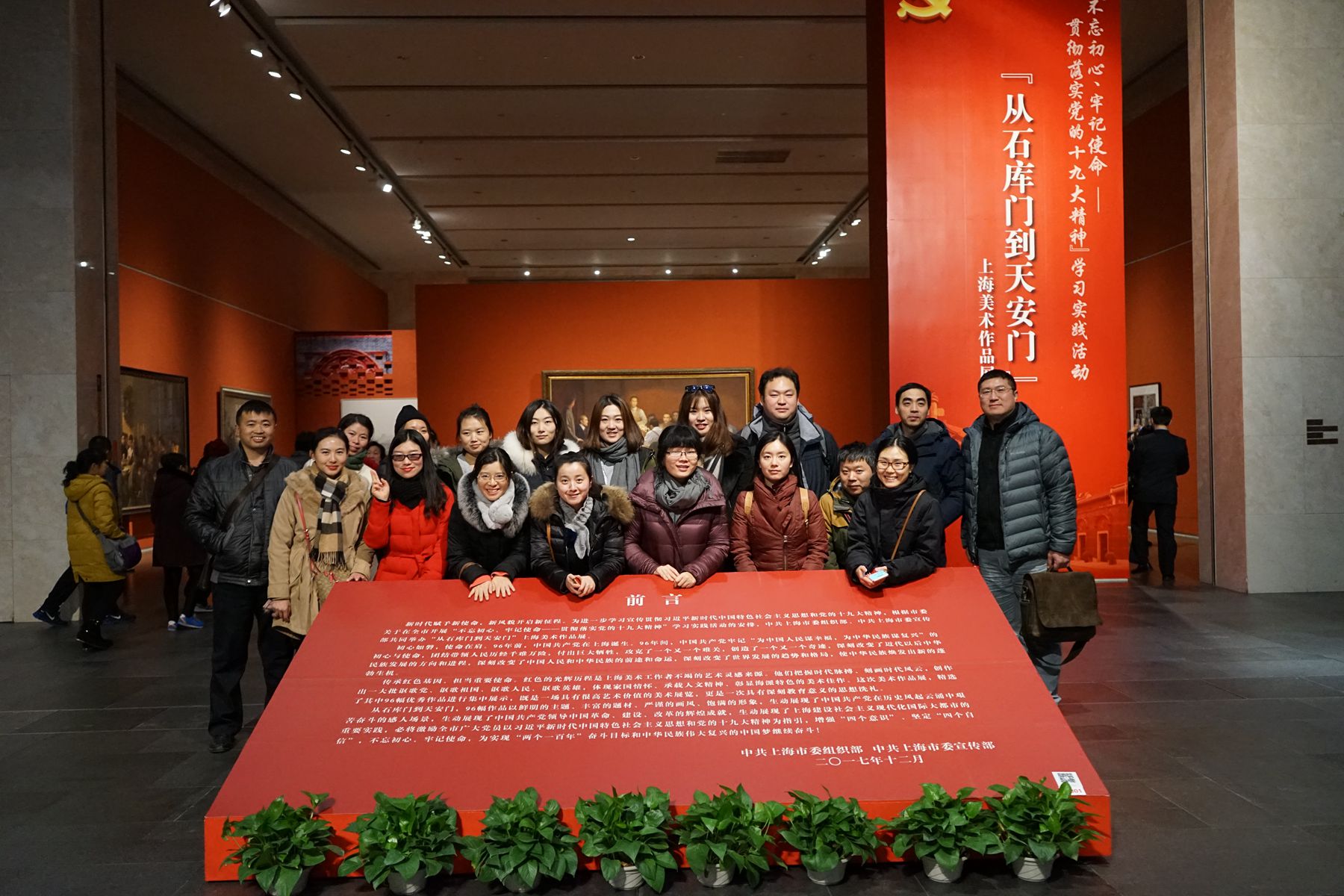 2018年1月12日设计与艺术学院党总支组织教职工前往中华艺术宫参观“从石库门到天安门”上海美术作品展。作品以国画、油画以及版画等等中国传统笔墨绘画为形式,呈现出我国现代美术的演变与成就。作品内容以四扇“门”为意向,即“石库门”、“窑洞门”、“天安门”、“复兴之门”,描绘出党的峥嵘岁月和卓越历程,讲述了中国共产党不断成长,走向成熟,逐渐富强,迈向成功的伟大历程。从“石库门”到“窑洞门”作品以党的一大会址石库门为核心象征,围绕党的诞生及时代背景,反映了五卅运动、长征之路、遵义会议以及南昌起义等重大事件;从“窑洞门”到“天安门”作品以抗日战争、解放战争为主要题材,反映了党的苦难岁月和军民同心齐力的曲折历程;从“天安门”到“复兴之门”作品以走进工厂、走到农村为具体内容,反映了新中国成立之后,人民当家做主,努力投入建设,展现了积极奋进的心态,激情昂扬的精神;“复兴之门”作品以多项科技成果为立足点,反映改革开放以来中国特色社会主义现代化建设取得的丰硕成就以及实现中华民族伟大复兴中国梦不懈奋斗的坚定决心。