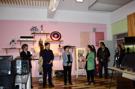学校党委书记田钦,学院党委办公室沈瑞环老师,设艺学院党总副书记高晓昧,党总支组织员郭云春及部分设艺学院教师接待访。