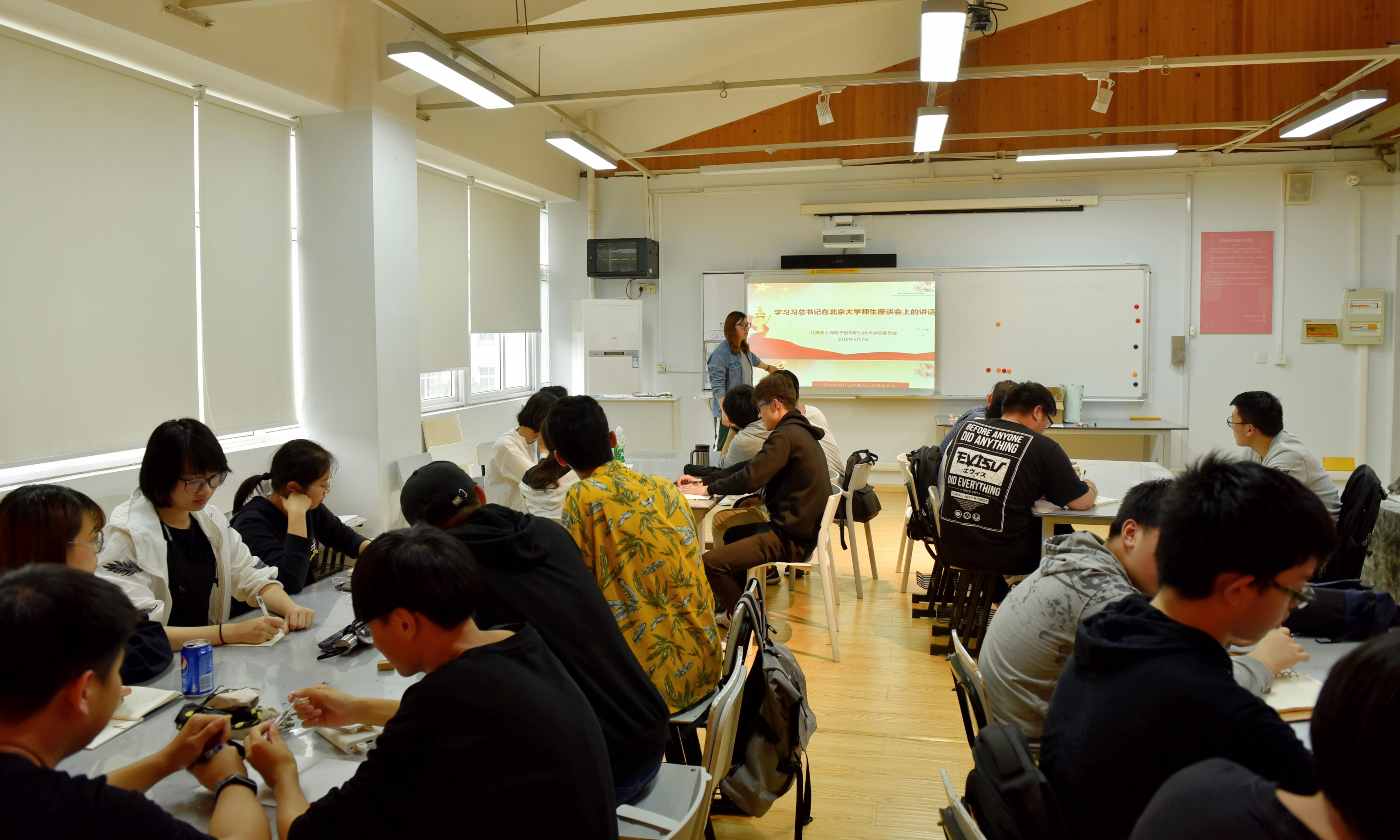为了积极响应上级团组织的号召,进一步增强在校学生的“四个意识”以及“四个自信”,坚持以习近平新时代中国特色社会主义思想为指导,不忘初心跟党走,青春拥抱新时代。2018年5月22日下午4时,设计与艺术学院全体团总支学生会成员在E211教室开展了学习习近平总书记在北京大学师生座谈会上的讲话以及习近平总书记在纪念马克思诞辰200周年大会上的重要讲话精神。