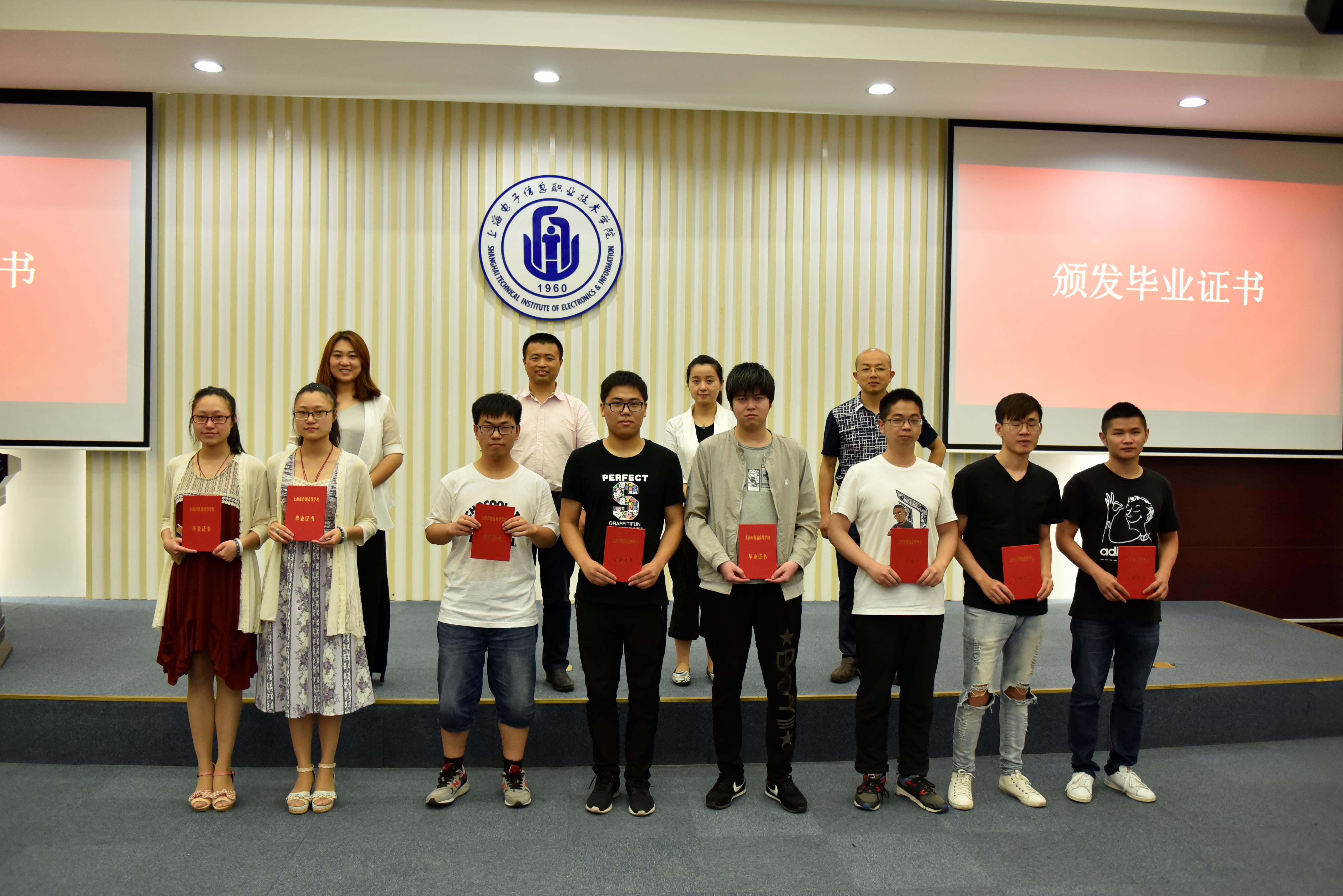 副书记高晓昧宣读了获得2018年度上海市普通高等学校优秀毕业生及2018年度上海电子信息职业技术学院优秀毕业生名单,并与副院长周前程老师分别为获奖学生颁发了荣誉证书。
