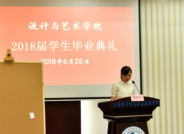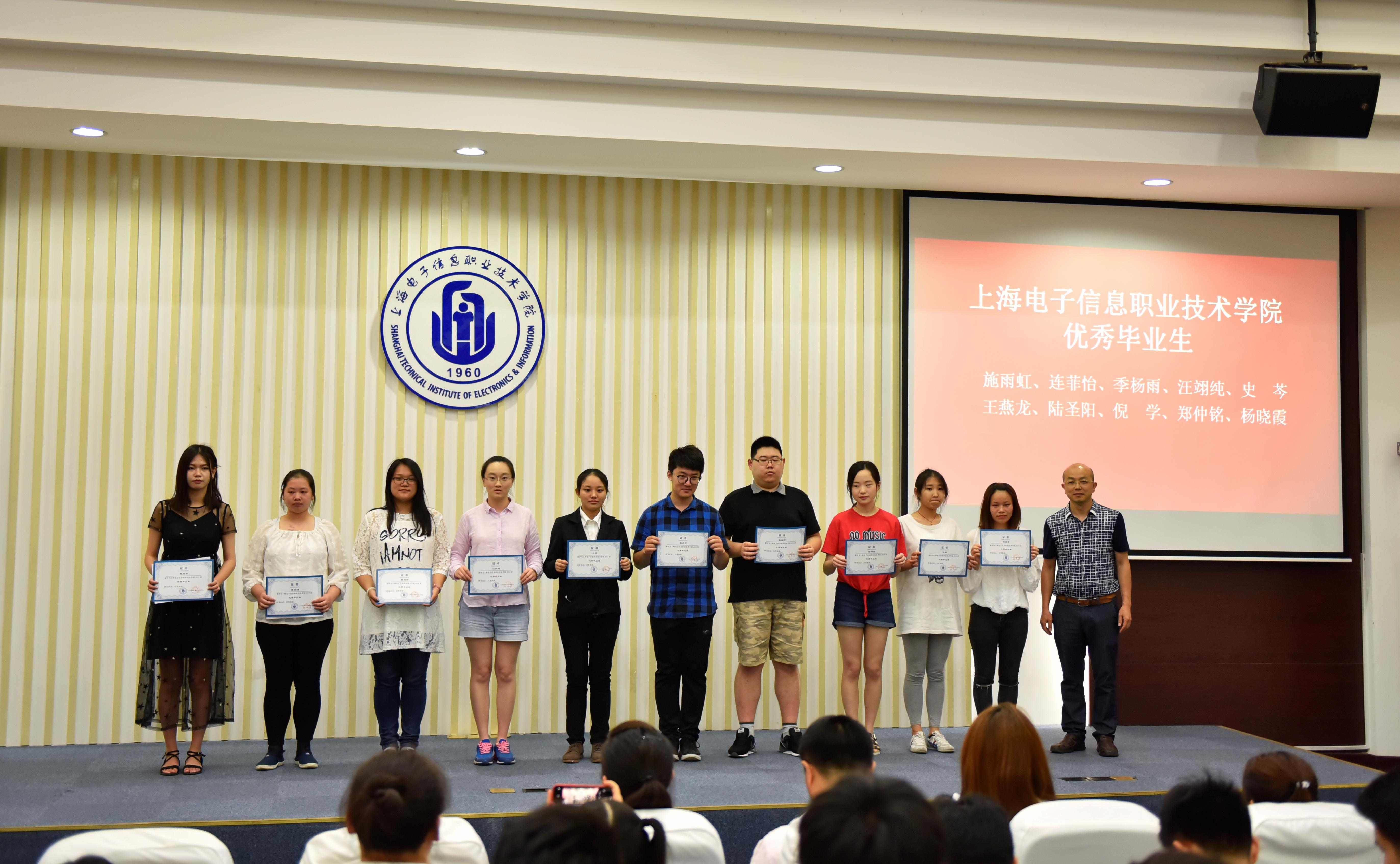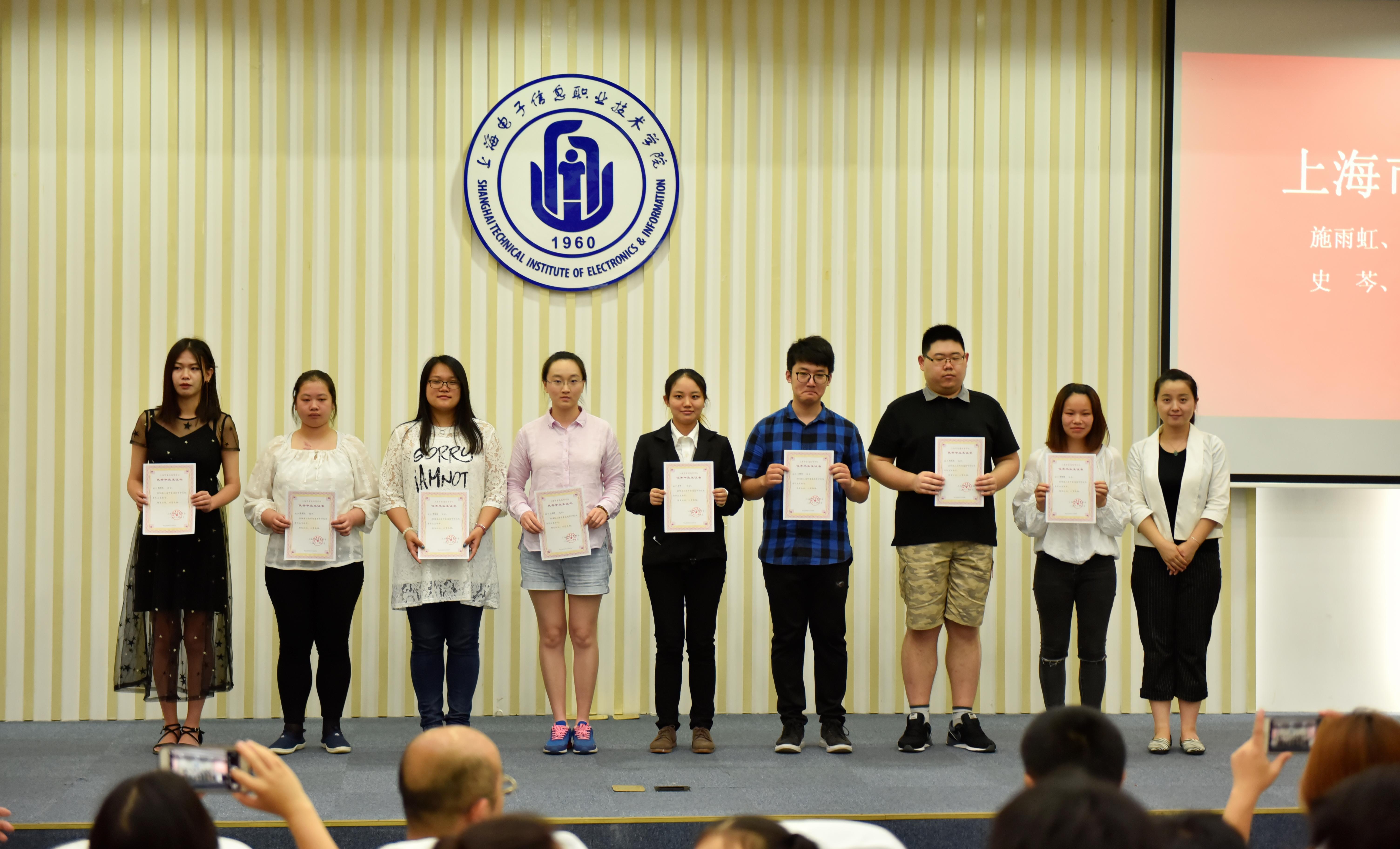 副书记高晓昧宣读了获得2018年度上海市普通高等学校优秀毕业生及2018年度上海电子信息职业技术学院优秀毕业生名单,并与副院长周前程老师分别为获奖学生颁发了荣誉证书。