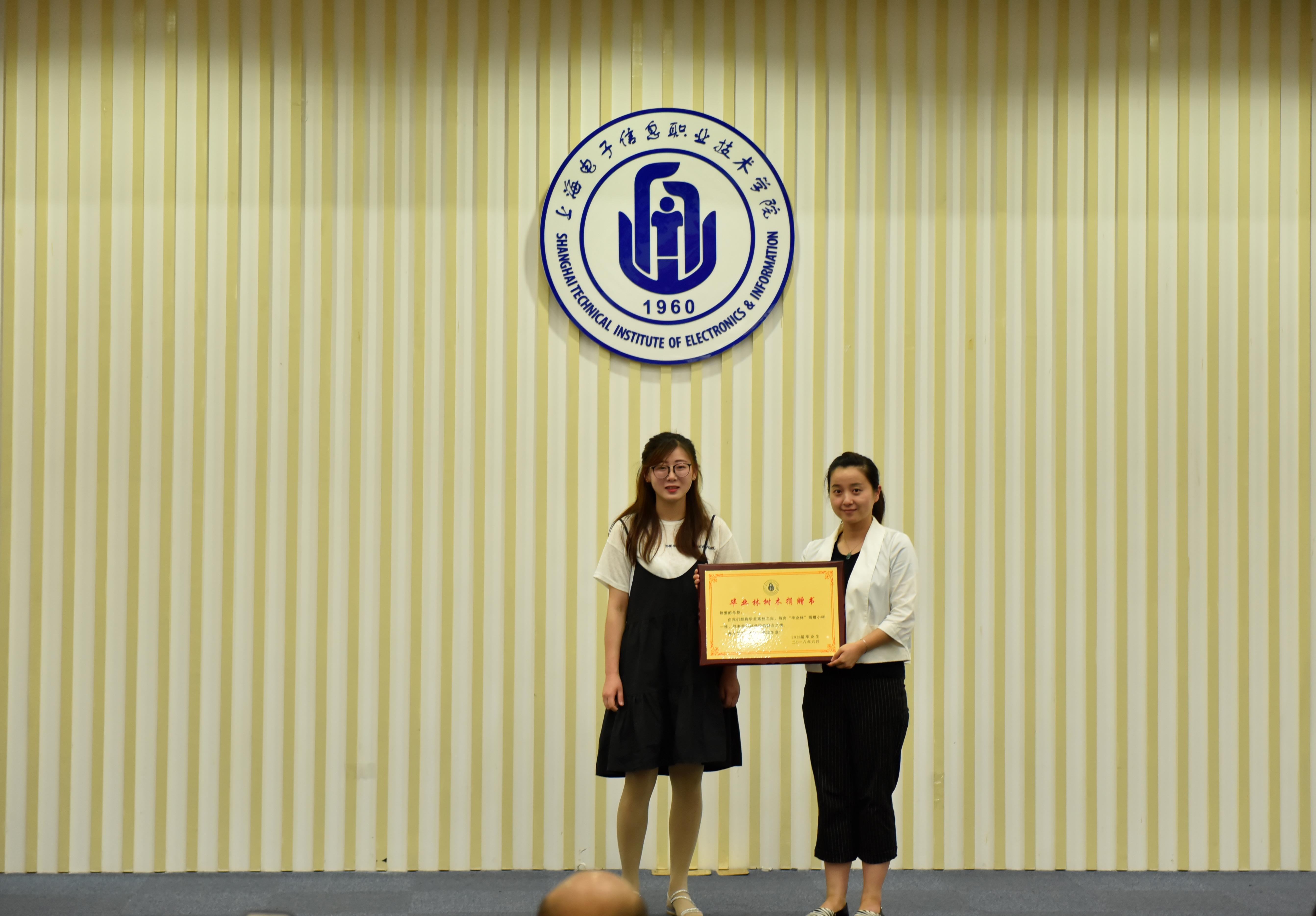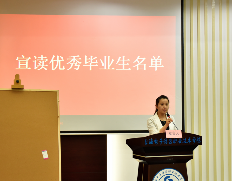 副书记高晓昧宣读了获得2018年度上海市普通高等学校优秀毕业生及2018年度上海电子信息职业技术学院优秀毕业生名单,并与副院长周前程老师分别为获奖学生颁发了荣誉证书。