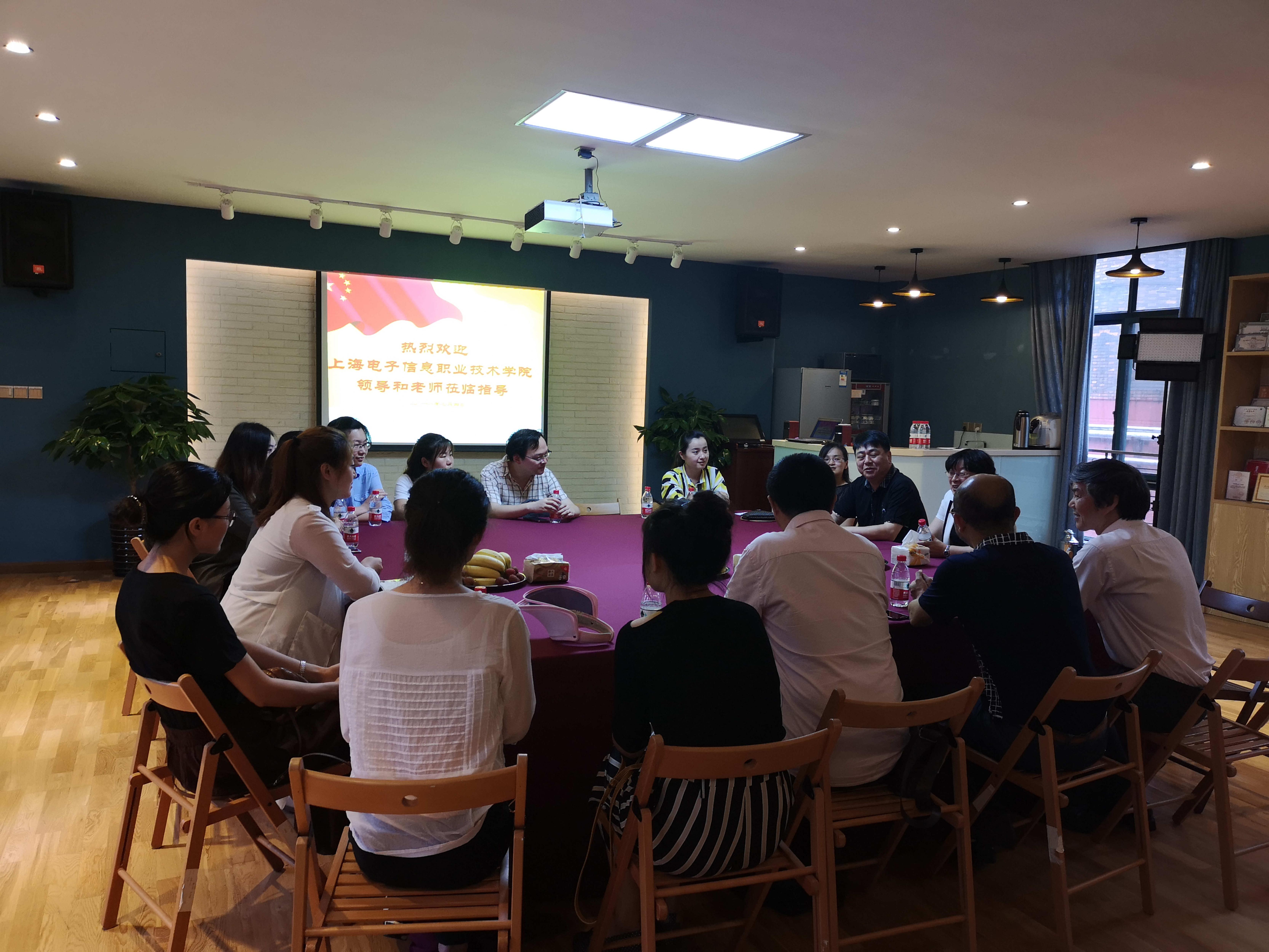 参与本次交流会的有:上海应用技术大学艺术与设计学院的林讯院长、孙立强副院长、党总支书记孙桂娟、教师党支部书记李岚、专业教师郑寒教授。上海电子信息职业技术学院党委书记田钦,设艺学院党总支副书记、副院长高晓昧,副院长周前程,以及设艺学院的党员和专任教师。