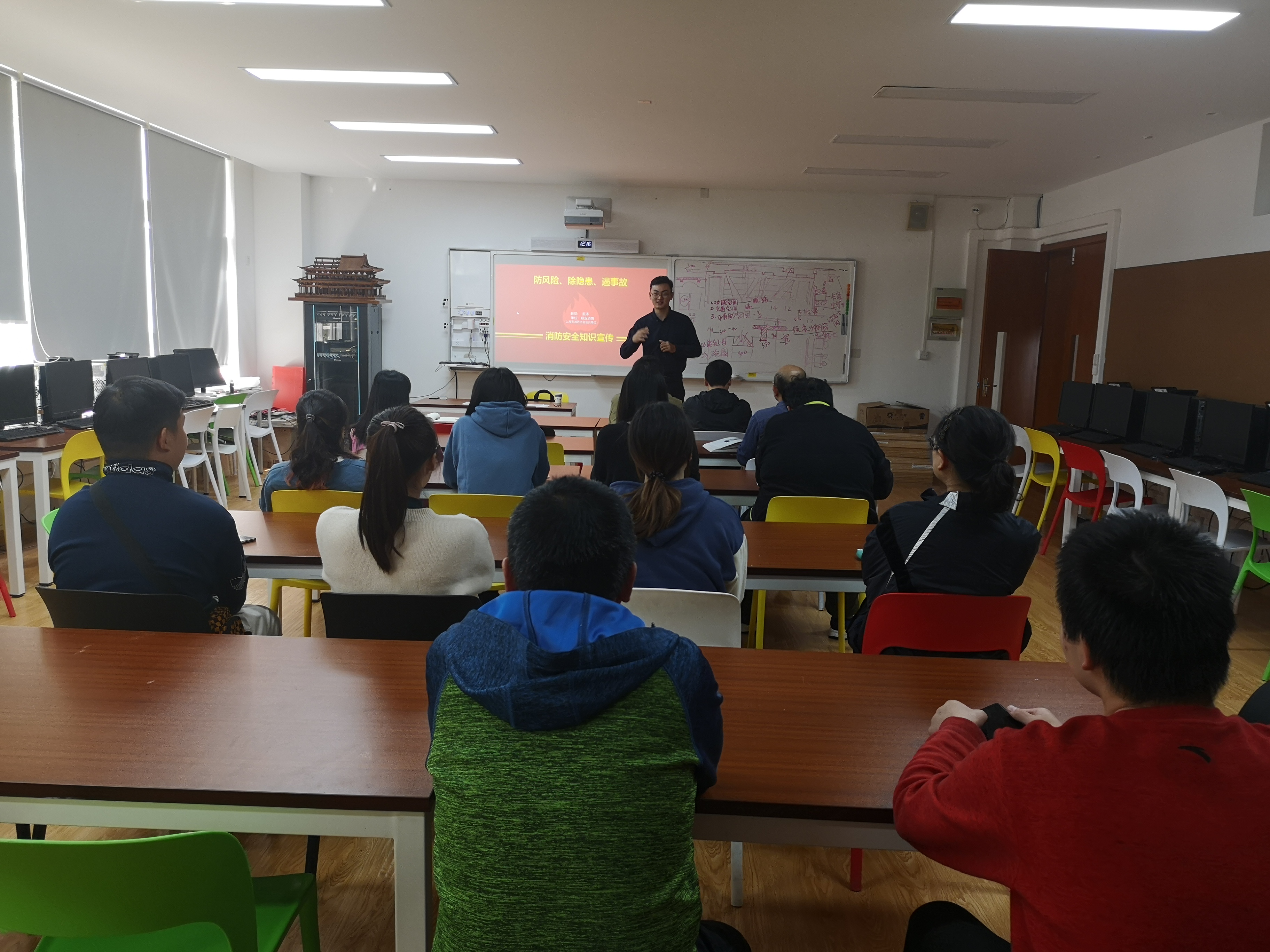 为了提高我院教职工消防安全意识,特别是我院辅导员在学生消防安全教育工作中的专业性及积极性,10月31日,我院在E106举办了消防安全专题培训。培训邀请到上海市消防协会会员单位崭安消防的董涛教员进行讲座。活动由我院副院长周前程主持,我院全体教职工参与了本次培训活动。