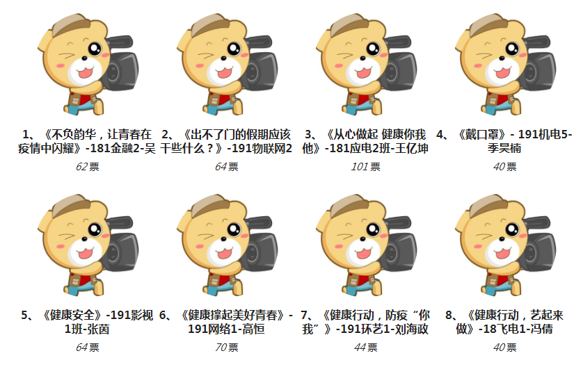 此次比赛,一来丰富了我校学子疫情期间宅家的文化生活,增强了疫情期间同学们身心卫生健康的意识。二来给我校学子提供了展示自我、分享阳光心灵的舞台。让同学们在视频创作的过程中学会健康行动,在生活中养成积极健康的生活好习惯。