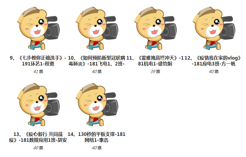 此次微视频制作大赛由前期云端宣传、中期筛选和最终评选三个环节组成。各二级学院心理指导老师根据比赛要求积极动员学生踊跃报名。评审小组将征集到的作品经过严格把关,最终评选出14个参赛作品进入决赛。本次比赛作品不仅主题多样、内容丰富,而且多数学生都亲自出镜示范动作,从不同视角展现出了上海电子信息职业技术学院莘莘学子们的博才多学及励志的既视感。最后经过评委的评选及易班投票,最终评选出本次比赛一等奖1名,二等奖2名,三等奖4名及最佳人气奖1名。