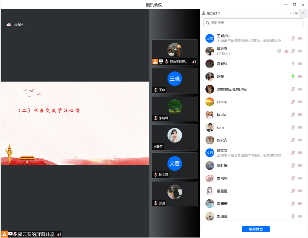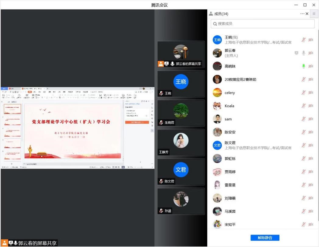 2022年5月12日,设计与艺术学院直属党支部组织全体专任教师通过线上形式学习《习近平给北京科技大学老教授的回信》、《习近平致首届全民阅读大会举办的贺信》和《习近平:坚持党的领导传承红色基因扎根中国大地走出一条建设中国特色世界一流大学新路》文件精神,与全体教师线上交流,勉励大家通过学习,进一步牢记初心使命,强化服务意识和责任担当。