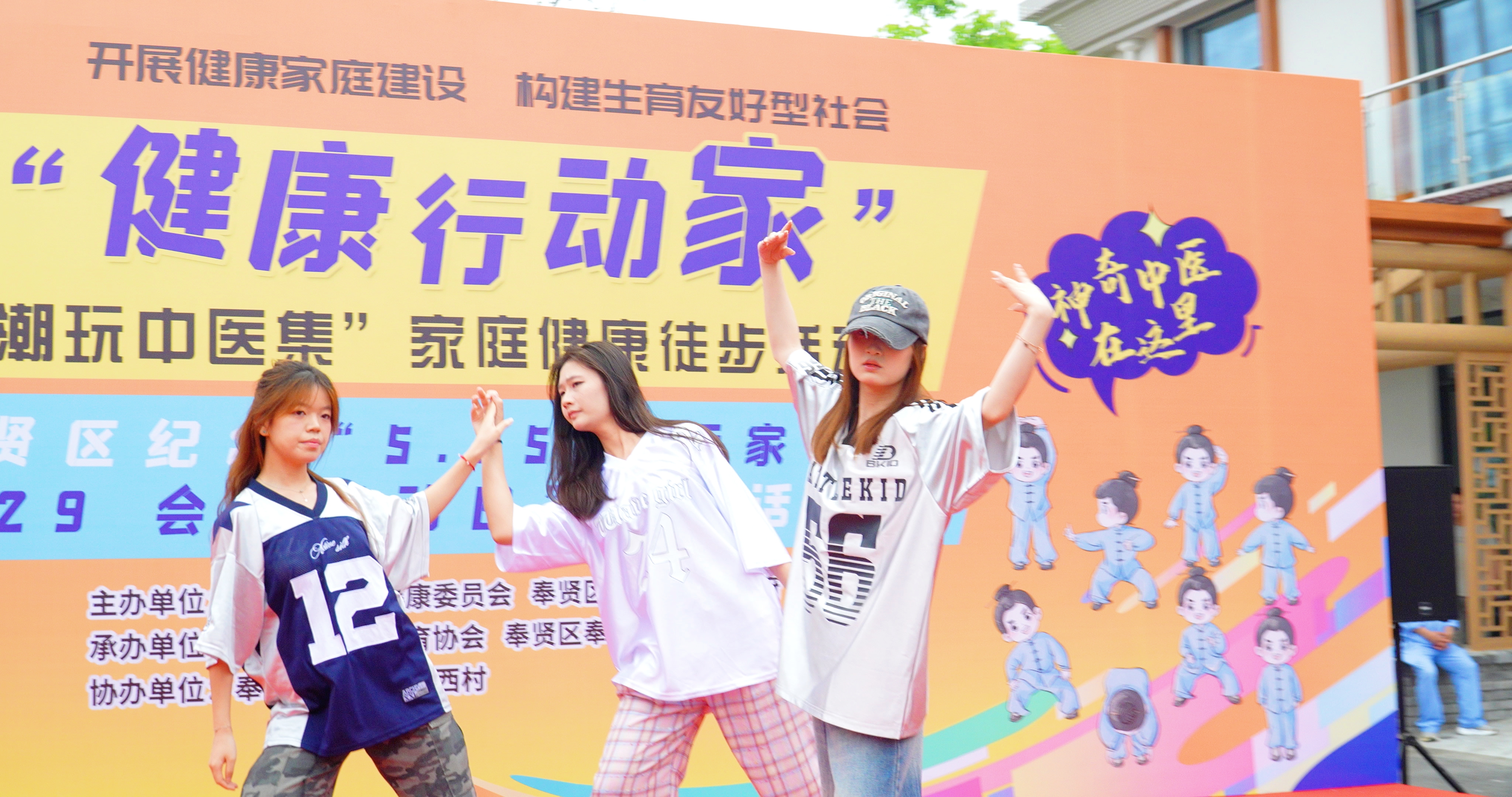 在“5.15 国际家庭日专题活动”中,学校大学生舞蹈团3名同学带来了活力四射的街舞表演,他们以动感节奏和青春张力点燃现场氛围,为活动热场助力,展现了学院学子的艺术活力和实践热情。同时,设艺学院派出了一支骑行队伍参与到“悦动奉贤”骑行活动中,展现出大学生的青春色彩。