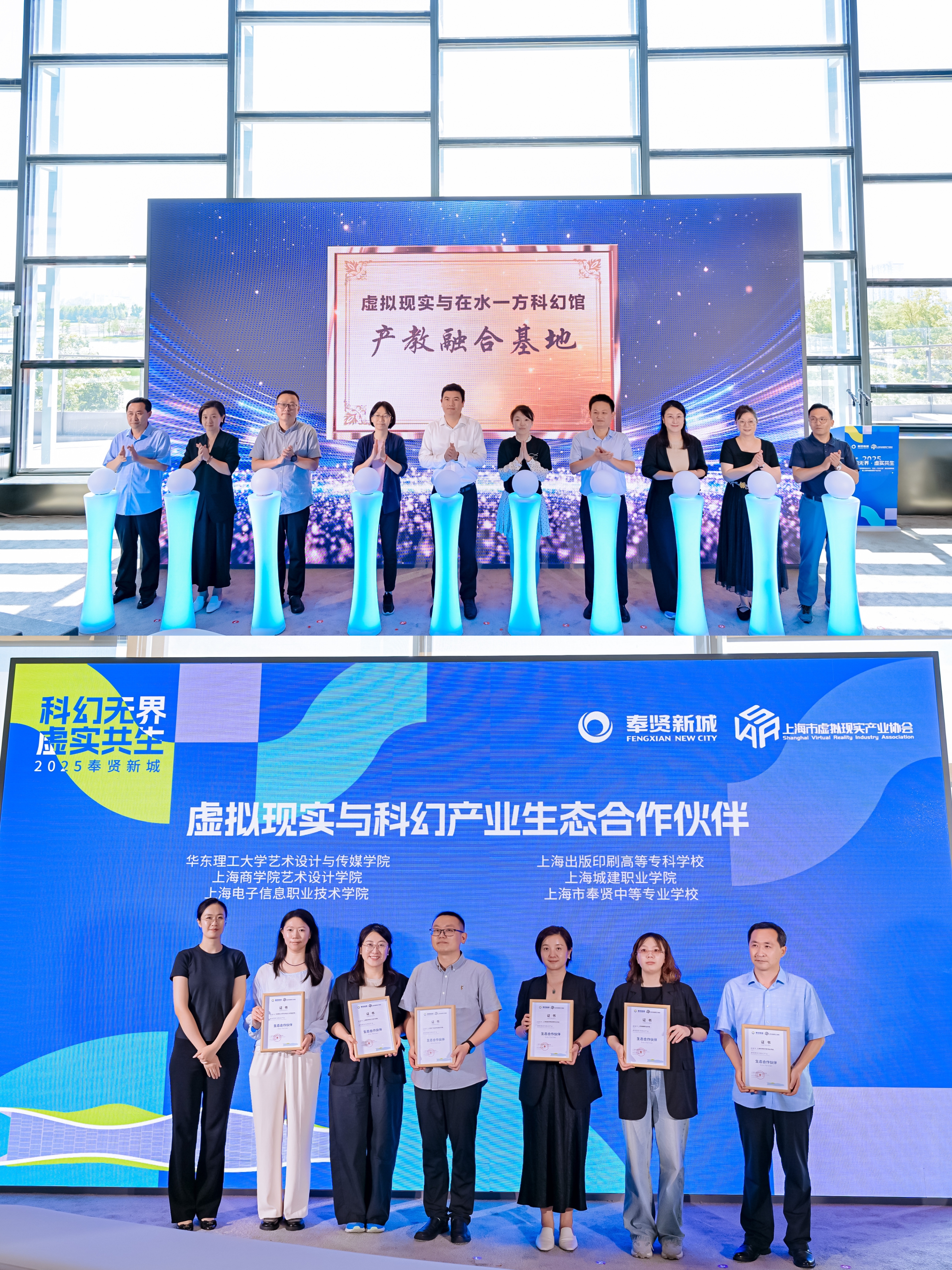 6月28日下午,设计与艺术学院受邀参加“2025年奉贤新城首届未来颠覆性技术与‘在水一方科幻馆’融合创新峰会暨上海市虚拟现实产业大会”论坛,会议在奉贤新城在水一方科幻馆圆满落幕。
