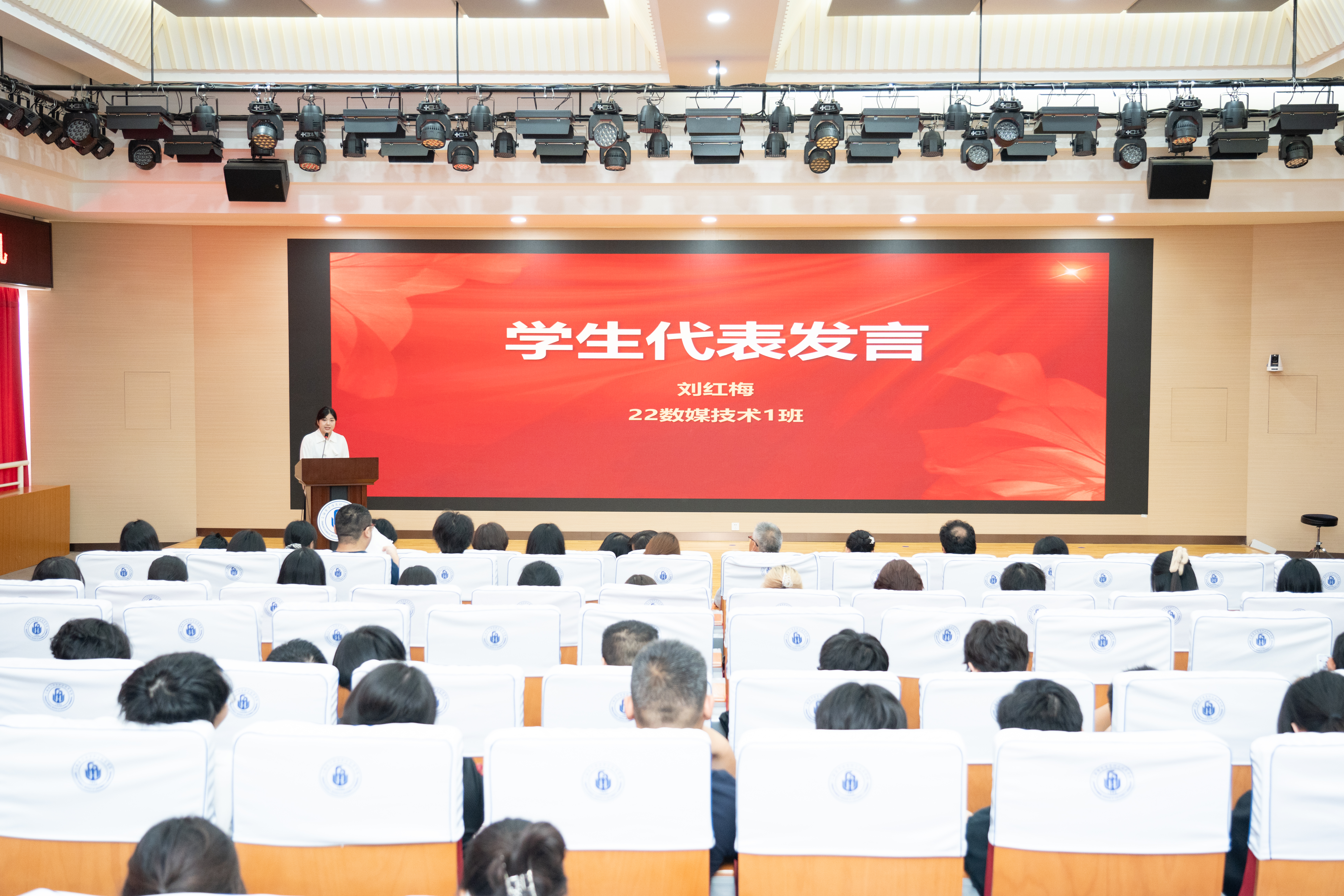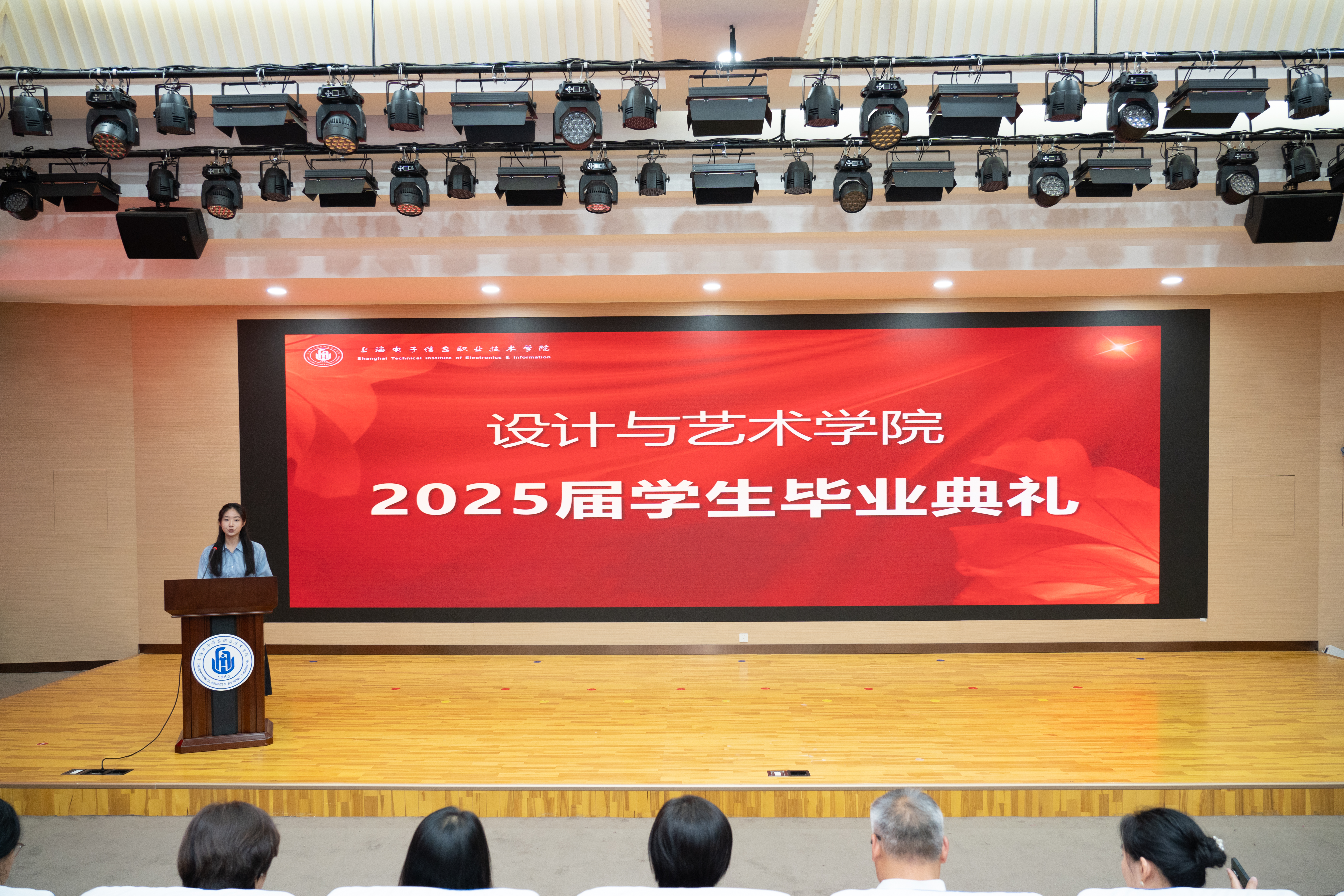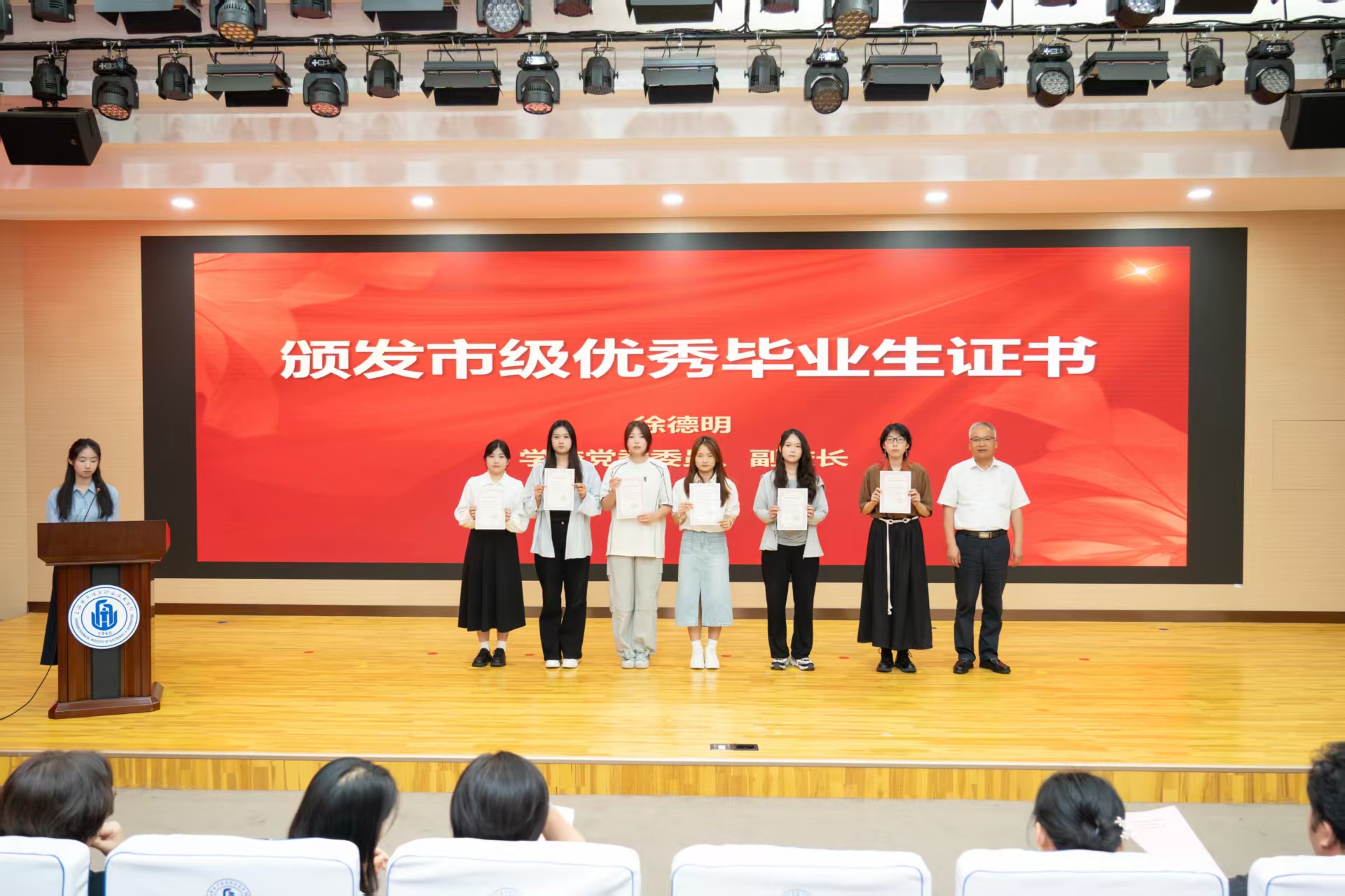 学生代表、22级数媒技术1班刘红梅同学回顾了在校学习生活的难忘经历,表达了对母校和师长的深切感激以及对未来的憧憬。设计与艺术学院党总支书记、院长高晓昧宣读了荣获“上海市优秀毕业生”称号的学生名单。徐德明为获奖学生颁发荣誉证书。