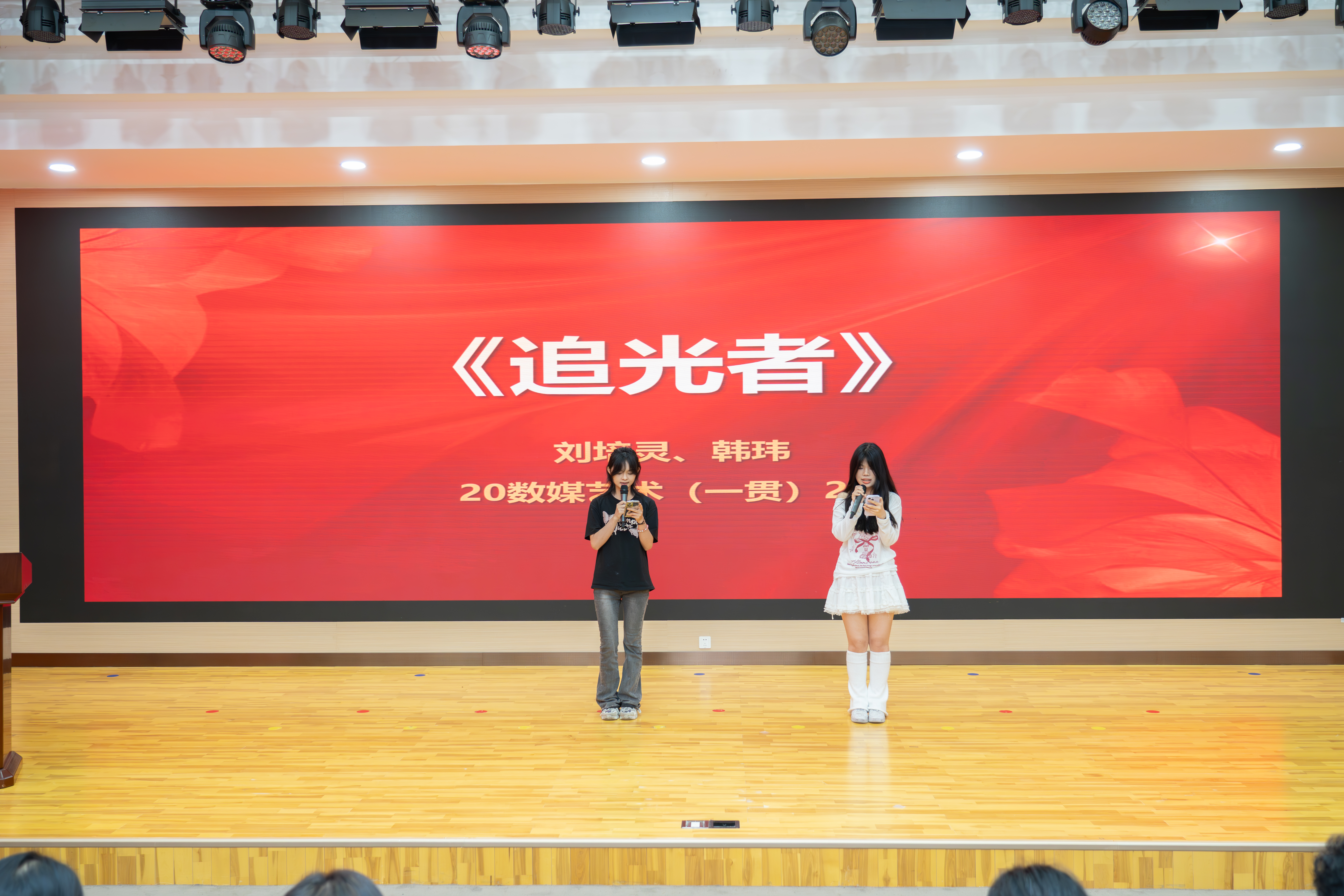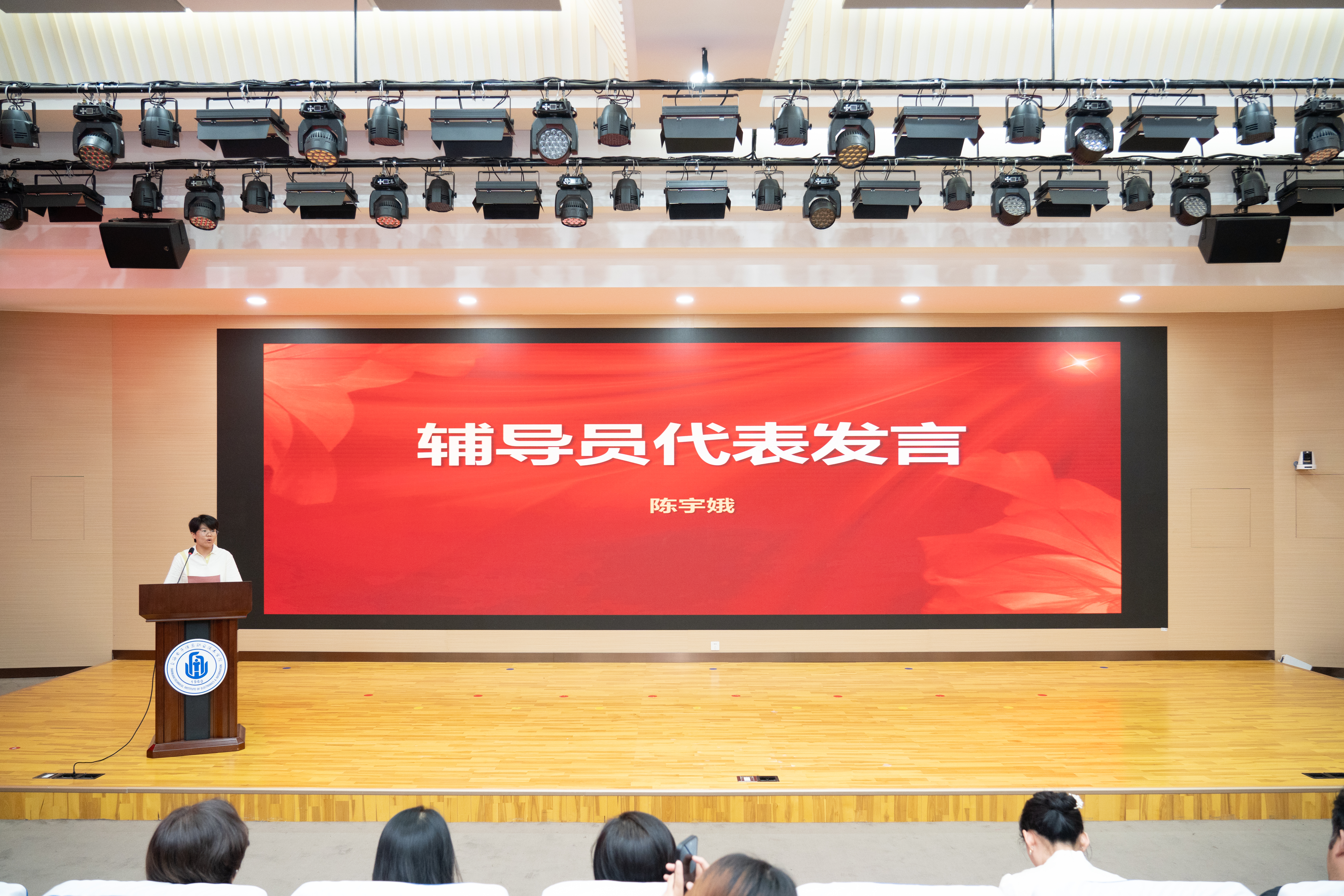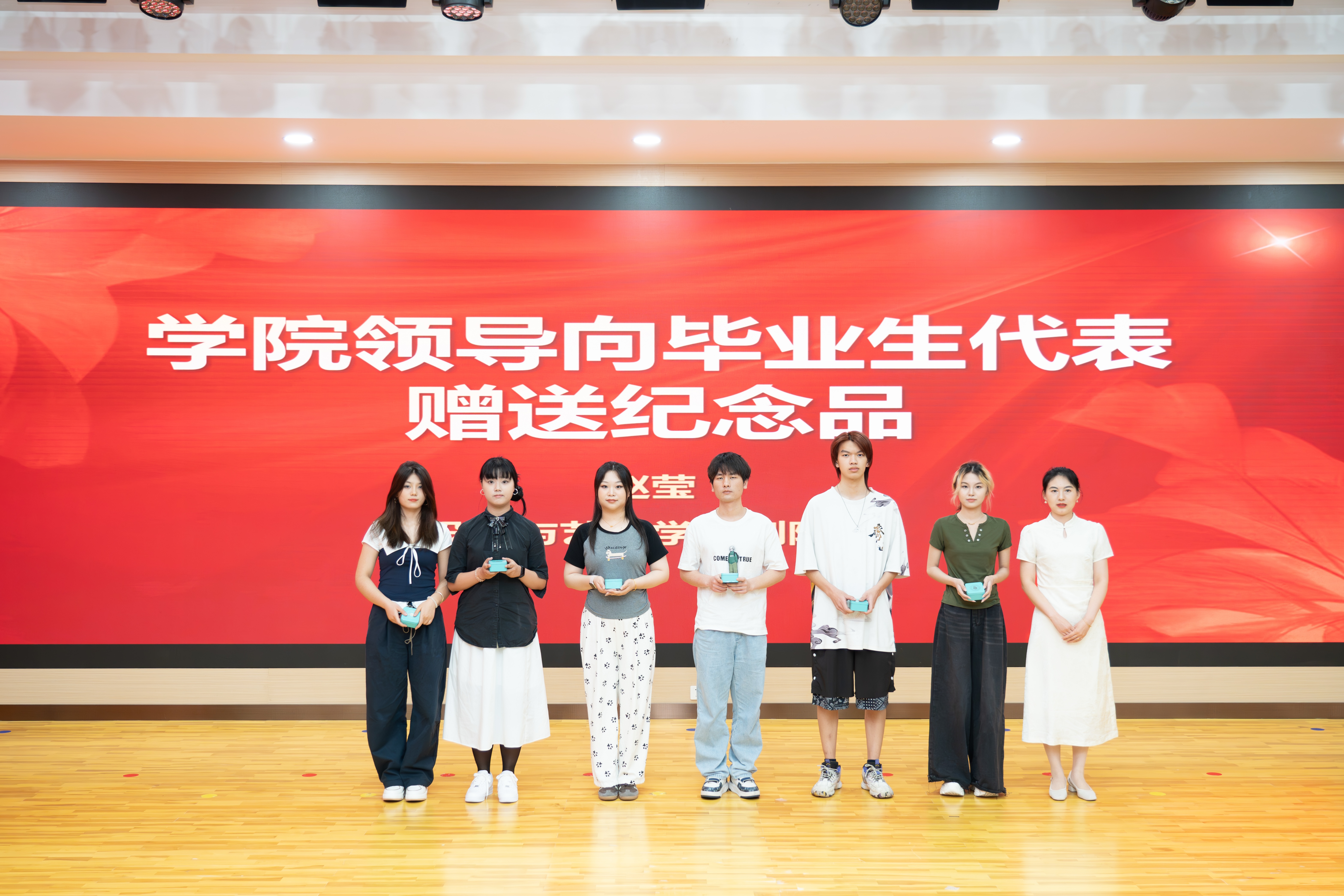 教师代表、产品艺术设计教研室教师吴二强为毕业生送上“最后一堂课”,鼓励毕业生永远怀揣对艺术的热爱,在纷繁复杂的社会里继续去发现美、欣赏美、创造美,保持真诚、正直和善良的生活态度,永远以匠心去工作,实现职教学生的自我价值。辅导员陈宇娥以“画笔交还你们,但请为人生留白”为题做最后的叮嘱,希望毕业生走出校门,务必关照好自己的身心,在拥挤的追求中为自己留下一方可呼吸的空间。在毕业生20数媒艺术(一贯)2班刘培灵、韩玮深情献唱后,设计与艺术学院副院长赵莹向毕业生代表赠送了毕业纪念品,传递母校的深情祝福。