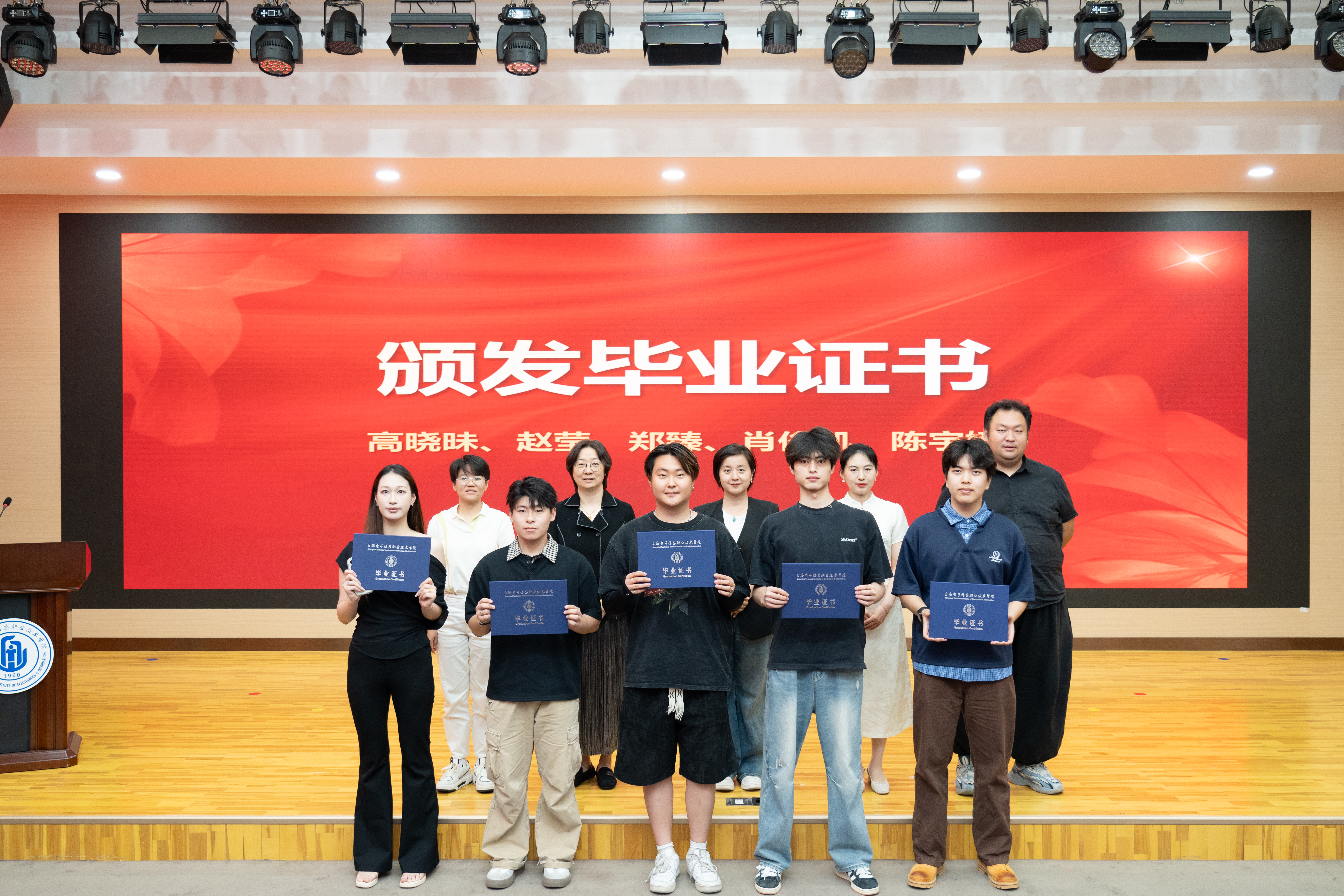 毕业证颁发环节,教师们共同为2025届毕业生代表逐一颁发毕业证书,标志着同学们圆满完成学业。